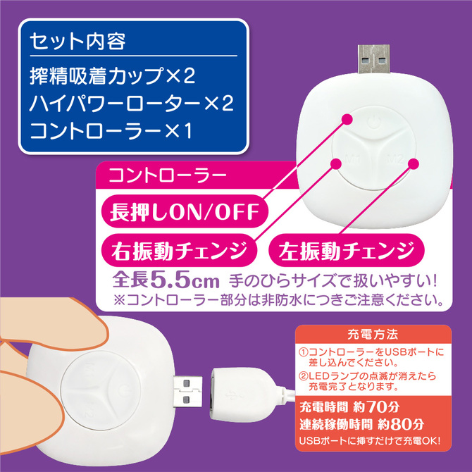 搾精吸着カップ×2、ハイパワーローター×2、コントローラー